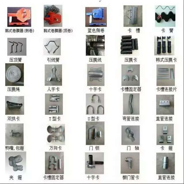 公司大棚配件經營范圍:手動卷膜器、電動卷膜器、大棚雙拱卡、大棚人字卡、大棚十字卡、大棚壓緊簧、大棚卡槽、卡簧、連接片、壓膜線、壓膜卡、門包角、包固、大棚門、底座、中鴨咀、拉桿配件、短鴨咀、長鴨咀、拉板、方管固器、連棟棚天溝、PC板溫室天溝、連棟側天溝、天溝水斗、U型卡、壓頂簧、鋼絲夾、固定卡(三件套)、雙頭管、接頭管、連接管、壓板、固膜卡、護套、塑料帽、T型卡、固定卡槽器、地錨、鴨嘴卡、韓式卷膜器、倒鏈側卷膜器、方管連接、縮頭打孔管等。